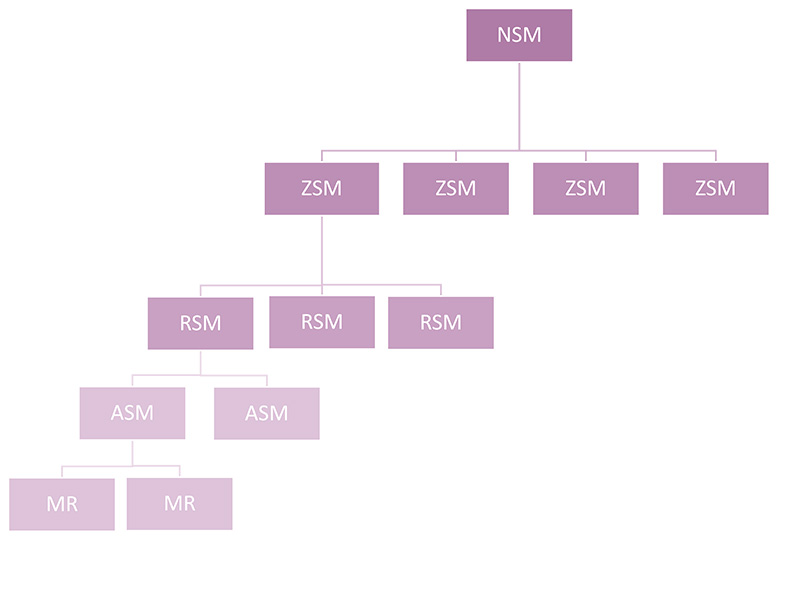 The brand has a National Sales Manager at the helm of driving customer centricity. The country is divided into strategic business zone and each zone has a Zonal Manager who reports into the NSM. The Zones are further divided into regions headed by RSM. These RSM’s report to the ZSM. The RSM have ASM reporting to them. The ASM with the help of their MR Teams cover the market.